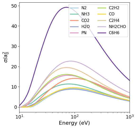 Description: Total ionization electron-impact cross sections for a subset of the ALeCS database.